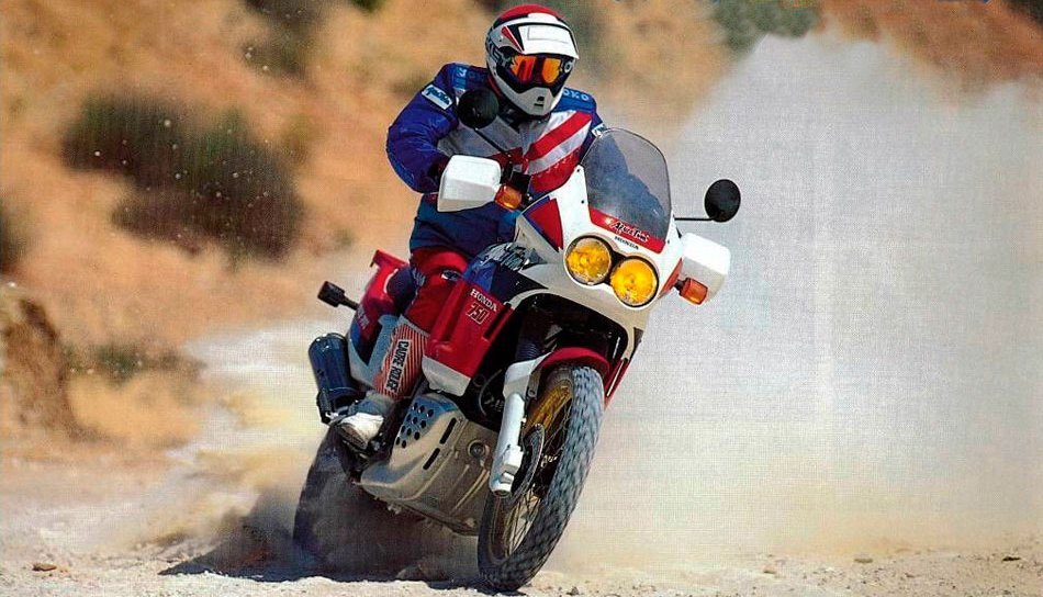 Todavía es recordada como una de las motos trail más equilibrada y robusta de la historia con su particular motor V-Twin con tres válvulas por cilindro. Su llanta delantera de 21 pulgadas, los 220 mm de recorrido de la suspensión, un depósito de 23 litros de capacidad, la expresiva doble óptica en el frontal y un peso en orden de marcha menor a 200 kilos configuran un conjunto muy atractivo. Honda ha devuelto recientemente a la vida a la Honda Africa Twin con la Honda CRF1000L Africa Twin 2016, ya con motor de litro.
